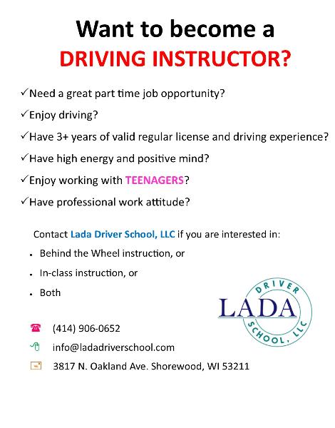 E-mail: info@ladadriverschool.com Phone: 414-906 0652 Fax: 414-906 1947